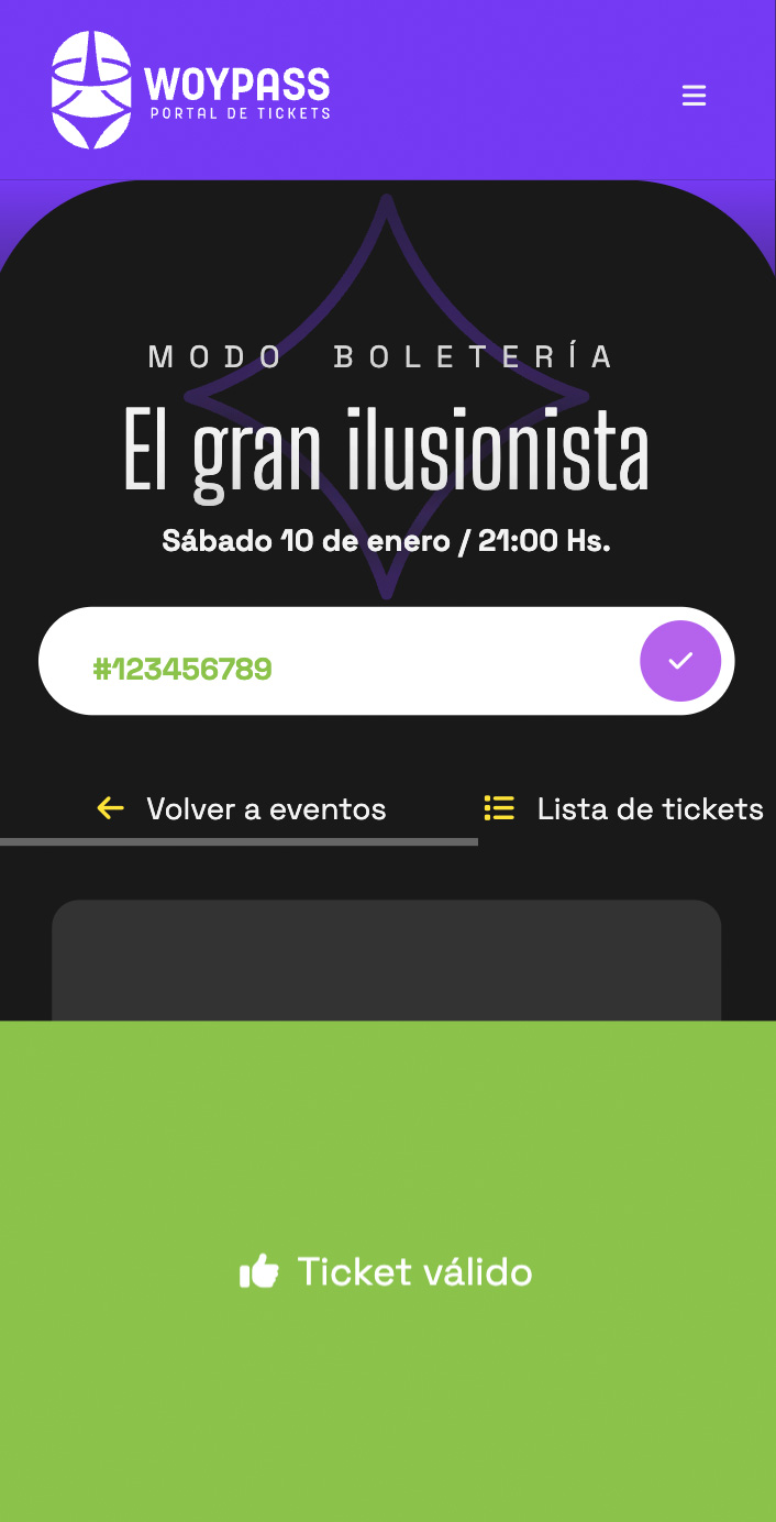 Probá WoyPass y tomá el control de tu boletería. Sin contratos. Sin letra chica. 100% personalizable.